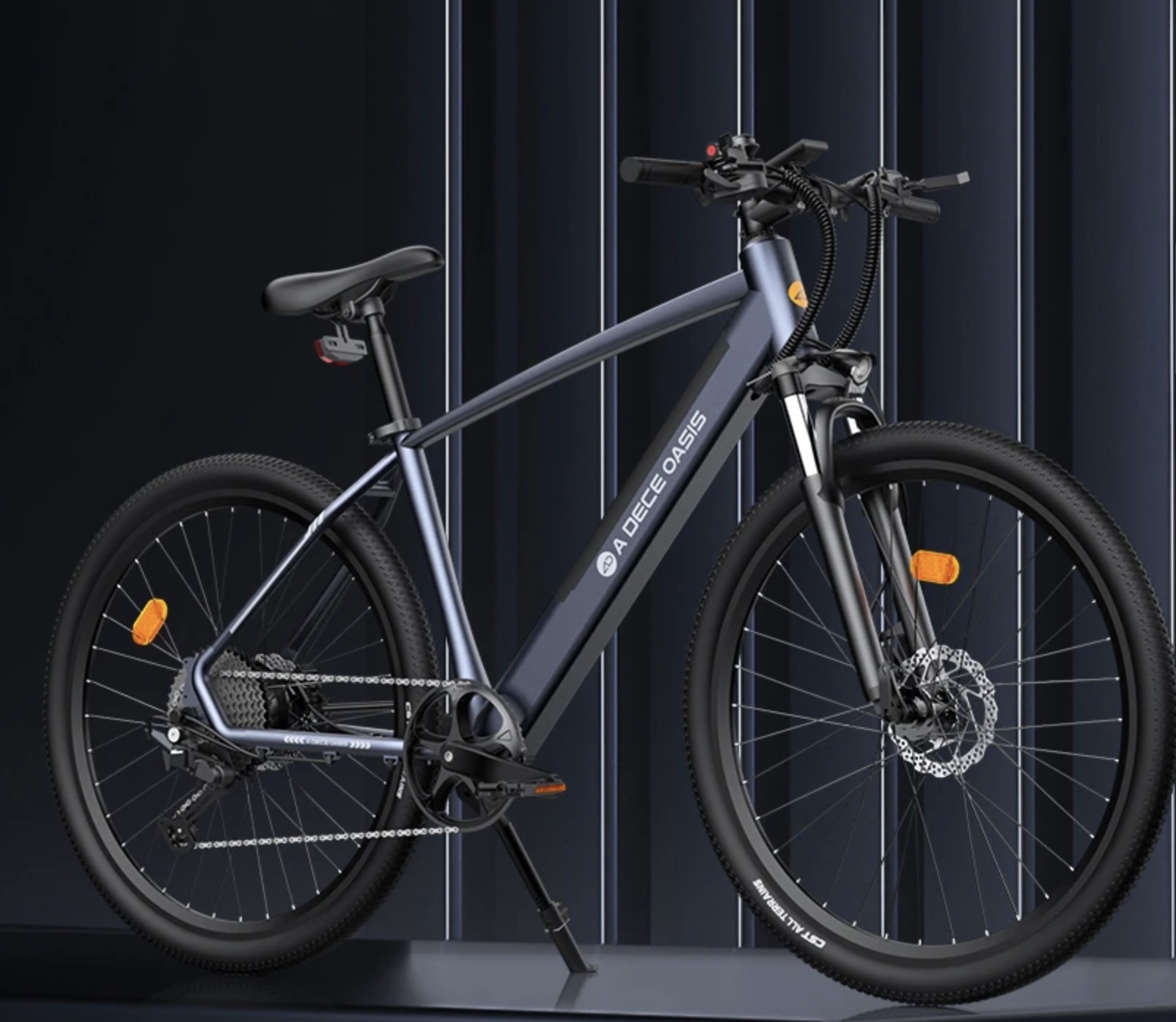 ADO DECE 300C con sistema ADO G-DRIVE 2.0 AI, transmisión Shimano de 9 velocidades, frenos de disco hidráulicos delanteros y traseros. La batería de alimentación desmontable y multiprotegida de 10,4 Ah.