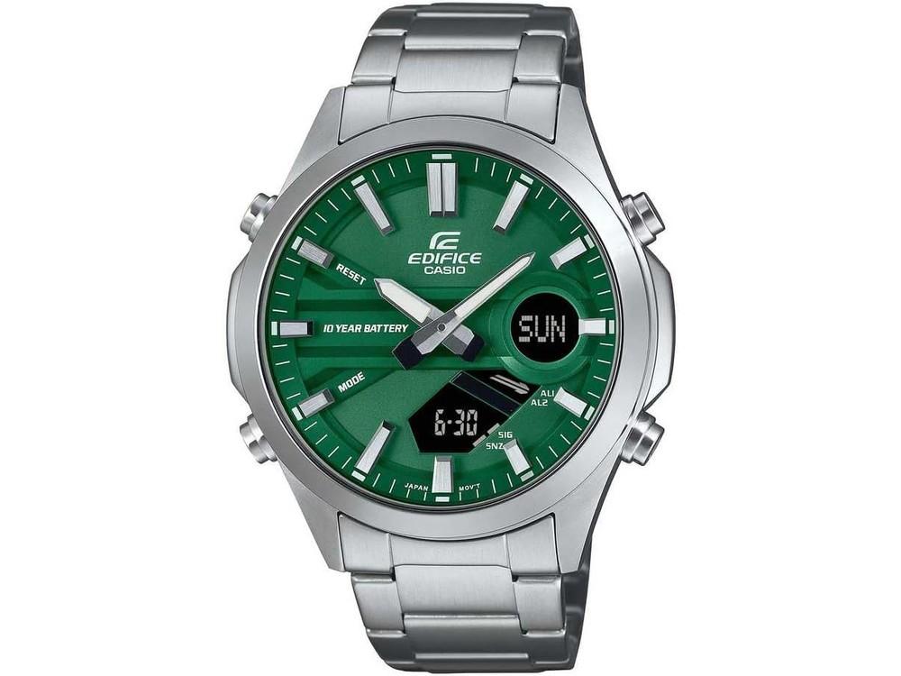 El Casio Edifice EFV-C120D-3AEF un reloj de pulsera con caja y correa de acero inoxidable de 45 mm de diámetro, resistente al agua hasta 10 bares. Combina un movimiento analógico y digital, con una duración de batería de hasta 10 años. Ofrece 29 zonas horarias, telememo con 30 grupos de datos, calendario automático, cronómetro, alarma y temporizador de cuenta atrás.