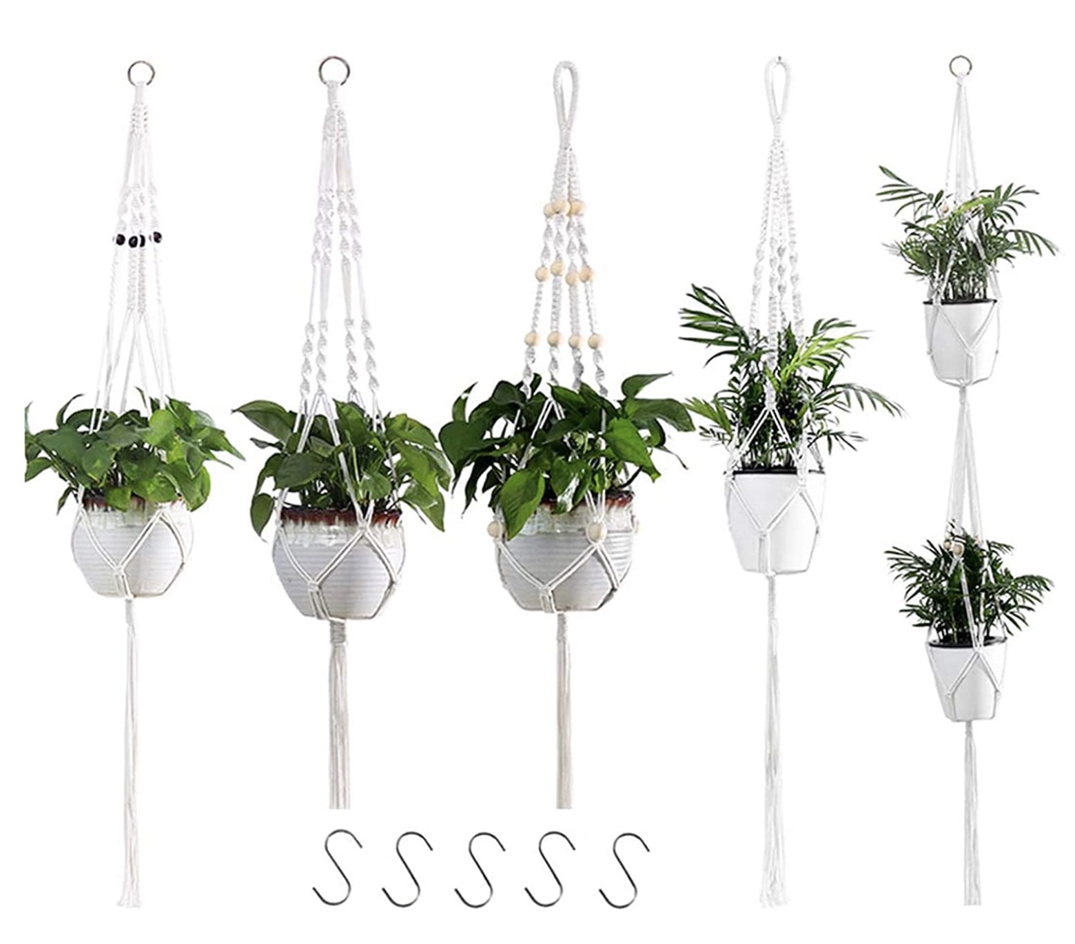 Colgadores para Plantas hecho de cordón de algodón 100% puro, ecológico. Viene con 4 piezas de colgadores diferentes.
