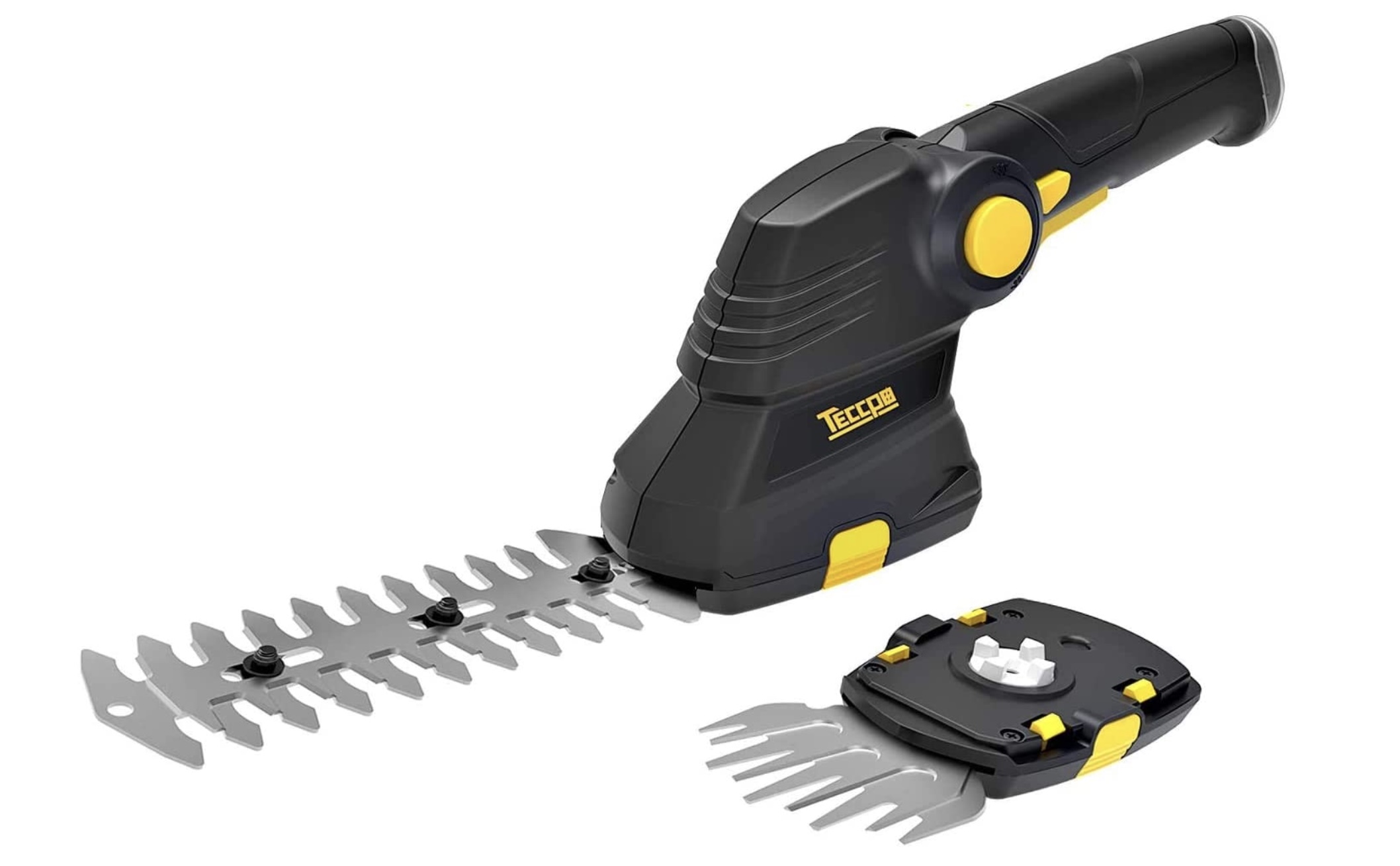 Cortasetos bateria 7.2V con batería de 1500mAh, juego de cuchillas 2 en 1, ancho de corte 90 mm, longitud de corte 170 mm, distancia entre engranajes de 8 mm.
