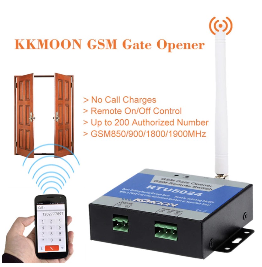 Interruptor de rele para abrir puertas se trata de un abridor de puerta GSM con interruptor de encendido/apagado remoto mediante llamadas telefónicas gratuitas autorizadas.