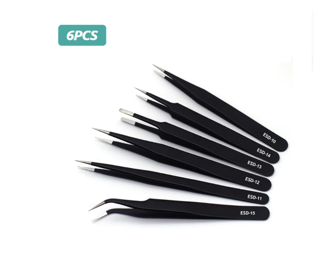 Pinzas Antiestáticas ESD están hechas de acero antiácido, resiste la corrosión, gran factor de resistencia y antiestático.