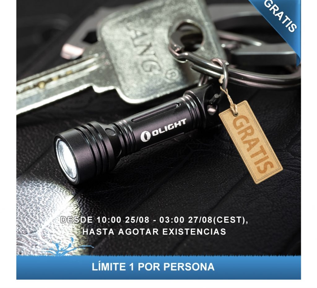 A continuación os dejamos la información para conseguir la Olight i3E Azul, al registrarte e iniciar sesión se agregará directamente a tu carrito. Hasta agotar existencia, una por persona. Envío gratis a partir de 49€. Se trata de una linterna perfecta para usar como llavero por su forma delgada, IPX8 a prueba de agua y resistencia a caídas hasta 2 metros.