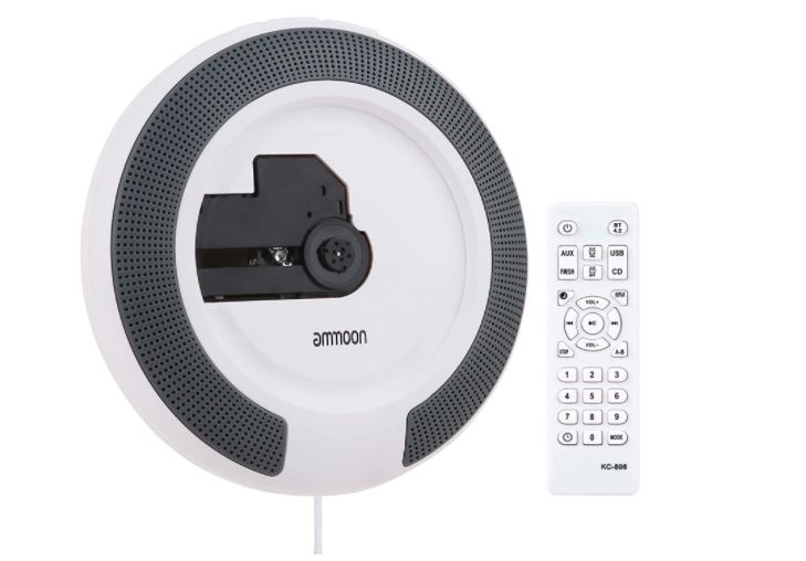 Reproductor CD portatil Ammoon también funciona como altavoz inalámbrico, radio FM, reproductor de USB o audio de 3,5 mm. Tiene un mando a distancia inalámbrico.