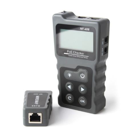 Tester Cable de red NF-488 tiene tres modos de modo digital, modo analógico y modo PoE. Además, incluye Medición de longitud del cable, pruebas de fallas de cable, pruebas PoE, parpadeo del eje y función NCV.