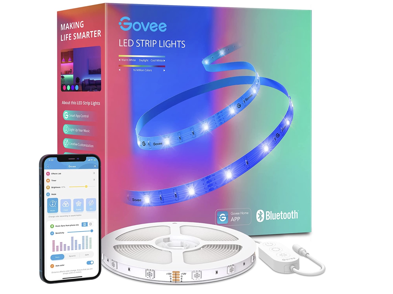 Tira LED RGB 10M Govee compatible con WiFi Alexa y Google Home. Tiene múltiples opciones de escena, micrófono integrado de alta sensibilidad y control mediante APP.
